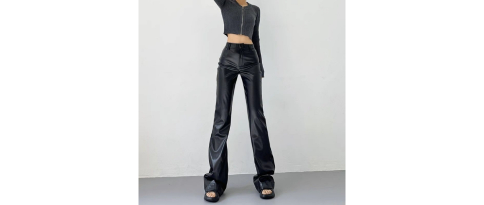 2023高腰显瘦紧身黑色皮裤女高级感垂坠拖地裤子休闲直筒阔腿长裤