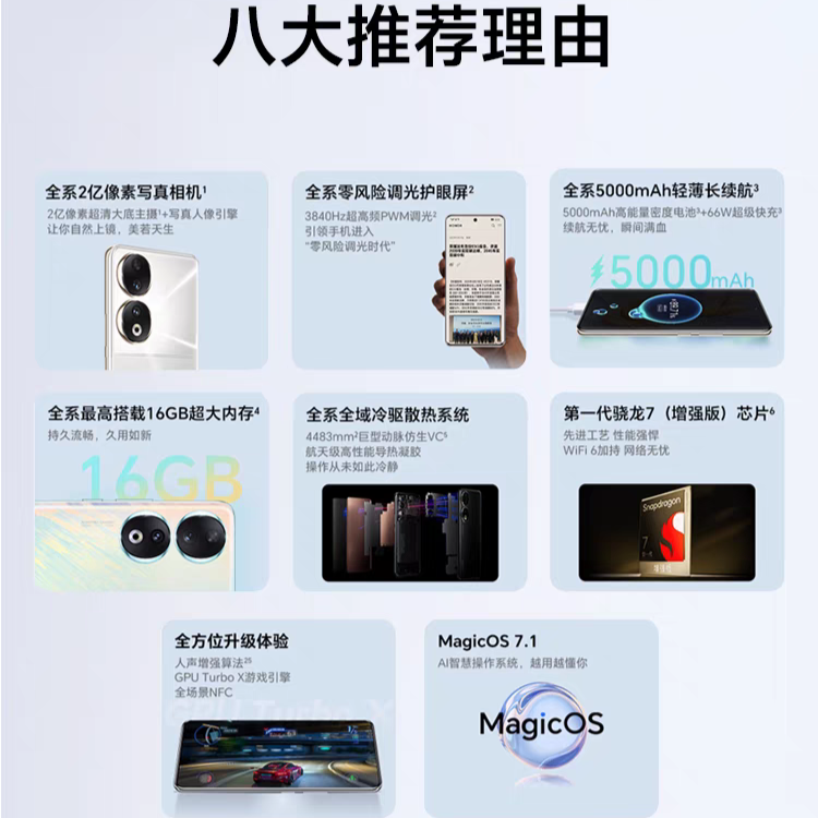 荣耀90 新款5G智能手机 高通骁龙芯片/2亿像素写真相机/3840Hz调光护眼屏官方旗舰店官网正品学生80