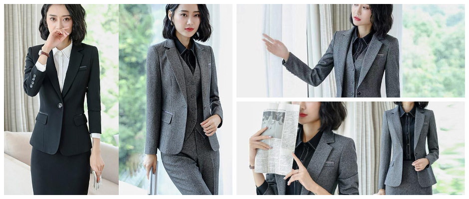西装套装女气质职业装女装套装大学生面试正装秋冬时尚工作服高档 灰色外套+灰色裤子 黑色 L