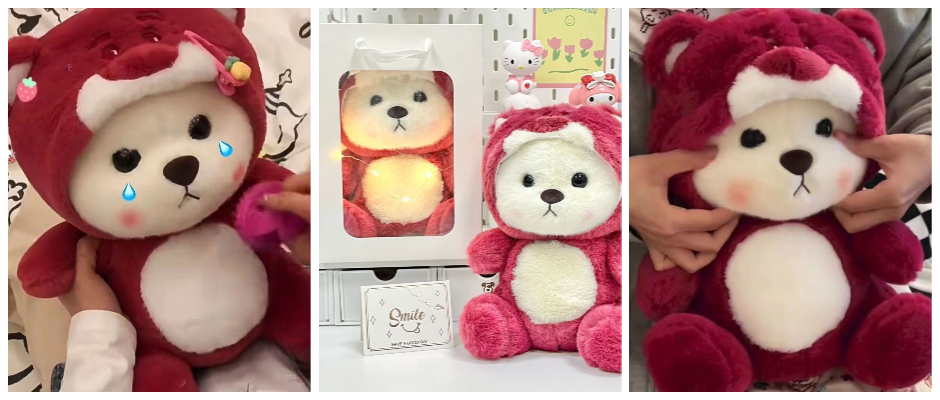 网红可爱超萌草莓公仔毛绒玩具变身小熊玩偶生日礼物少女生日礼物 玩偶 红色 29cm