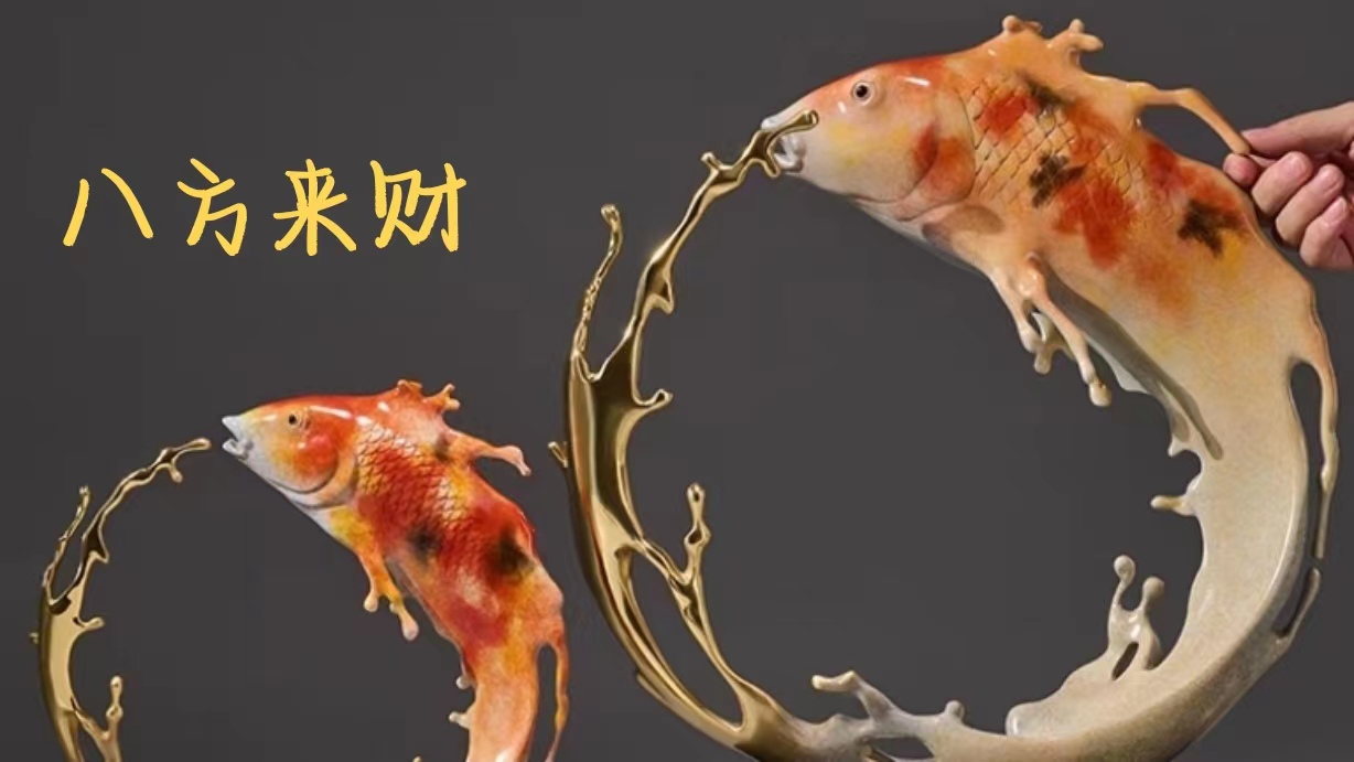 如鱼得水 招财木铜摆件生意金鱼开业乔迁新居礼物办公室装饰品