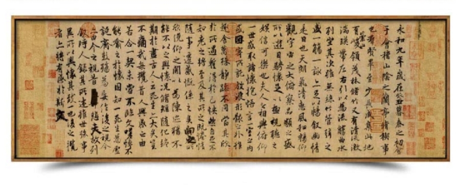 享得新中式王羲之兰亭序字画书法作品客厅装饰画办公室书房挂画壁画 拉丝钛金+有机玻璃
