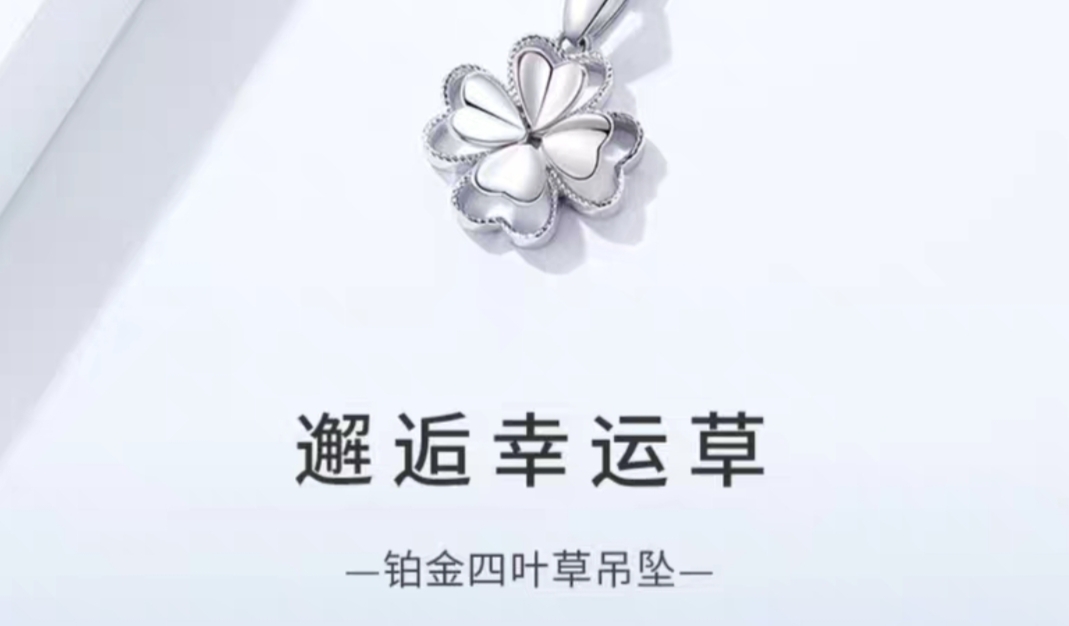 周大生铂金四叶草吊坠女白金锁骨链单挂坠套链送女友节日礼物