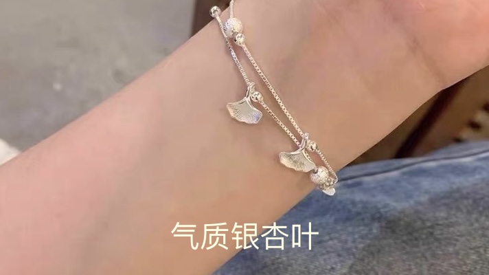 999纯银双层叠戴银杏叶手链女款轻奢小众精致2023年新款生日礼物
