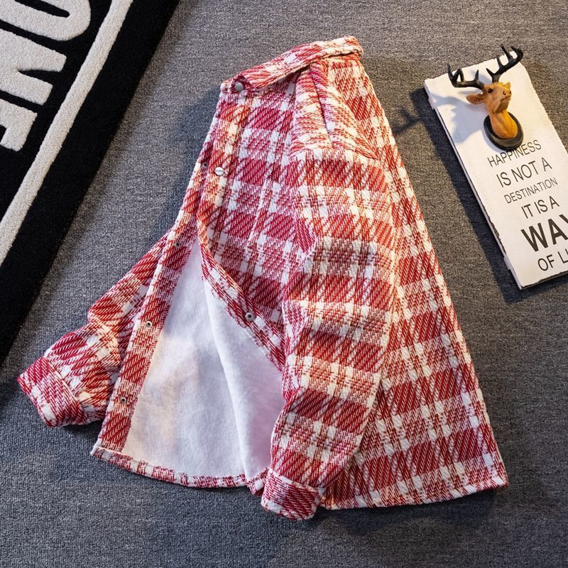 痞帅加厚毛呢外套男冬季加绒情侣工装衬衫痞帅复古潮流格子夹克