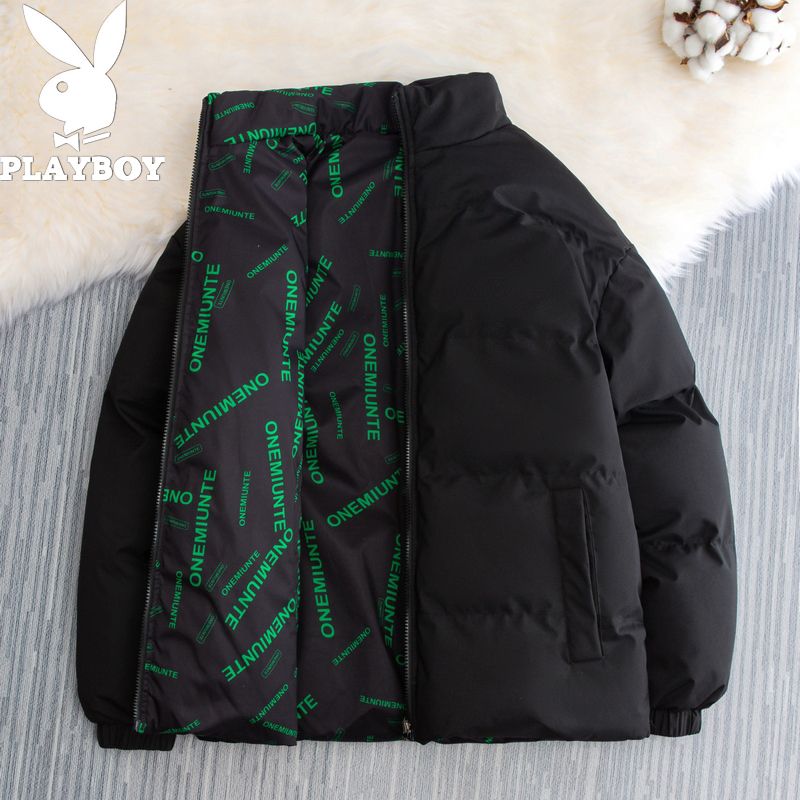 花花公子潮牌双面穿印花羽绒棉服男冬季休闲宽松立领棉衣保暖外套