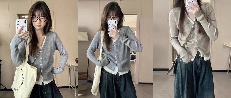 Milli Millu假两件针织衫女春秋2023新款早秋季打底长袖上衣小众