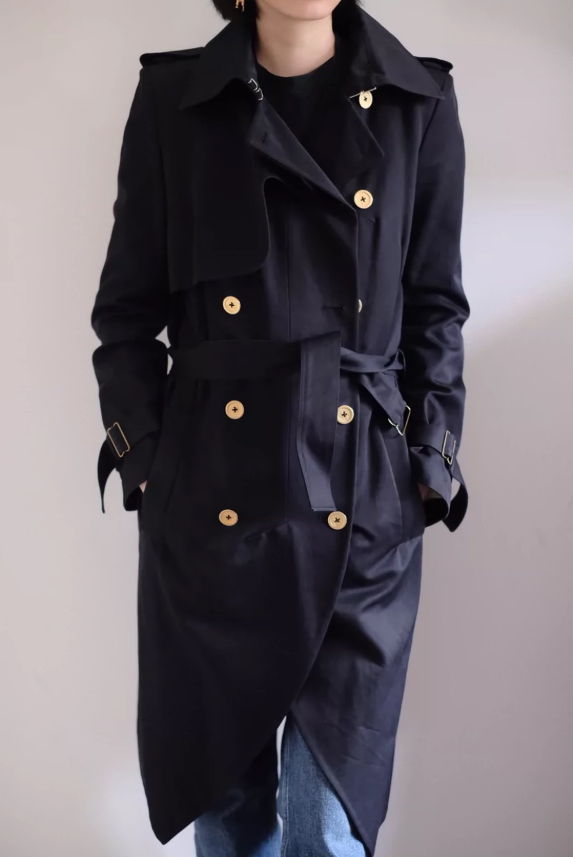 中古 蛋黄色西装版型 带一点收腰设计 12颗沉甸甸质感的金属扣 意产