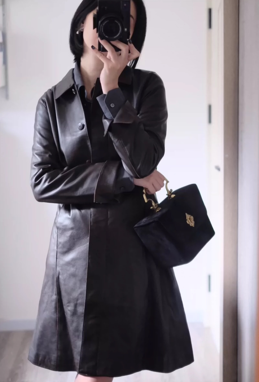 羊皮质感轻薄柔软 保暖透气, 一颗明扣四颗隐藏扣,当连衣裙穿效果也是极好,肩宽39胸围96衣长95