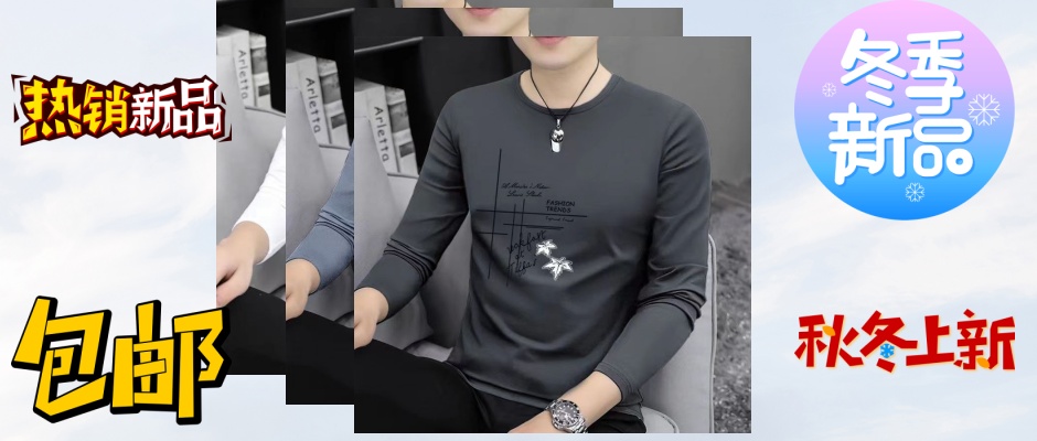 男士长袖t恤春秋款休闲男装2023新款纯棉修身显瘦大码上衣打底衫