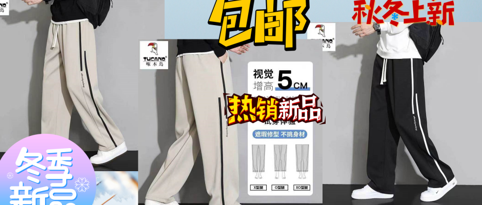 啄木鸟休闲裤男2023新款秋冬宽松男士潮流百搭加绒加厚长裤裤子潮