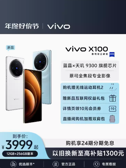 vivo X100新品蓝晶×天玑9300旗舰芯片闪充
