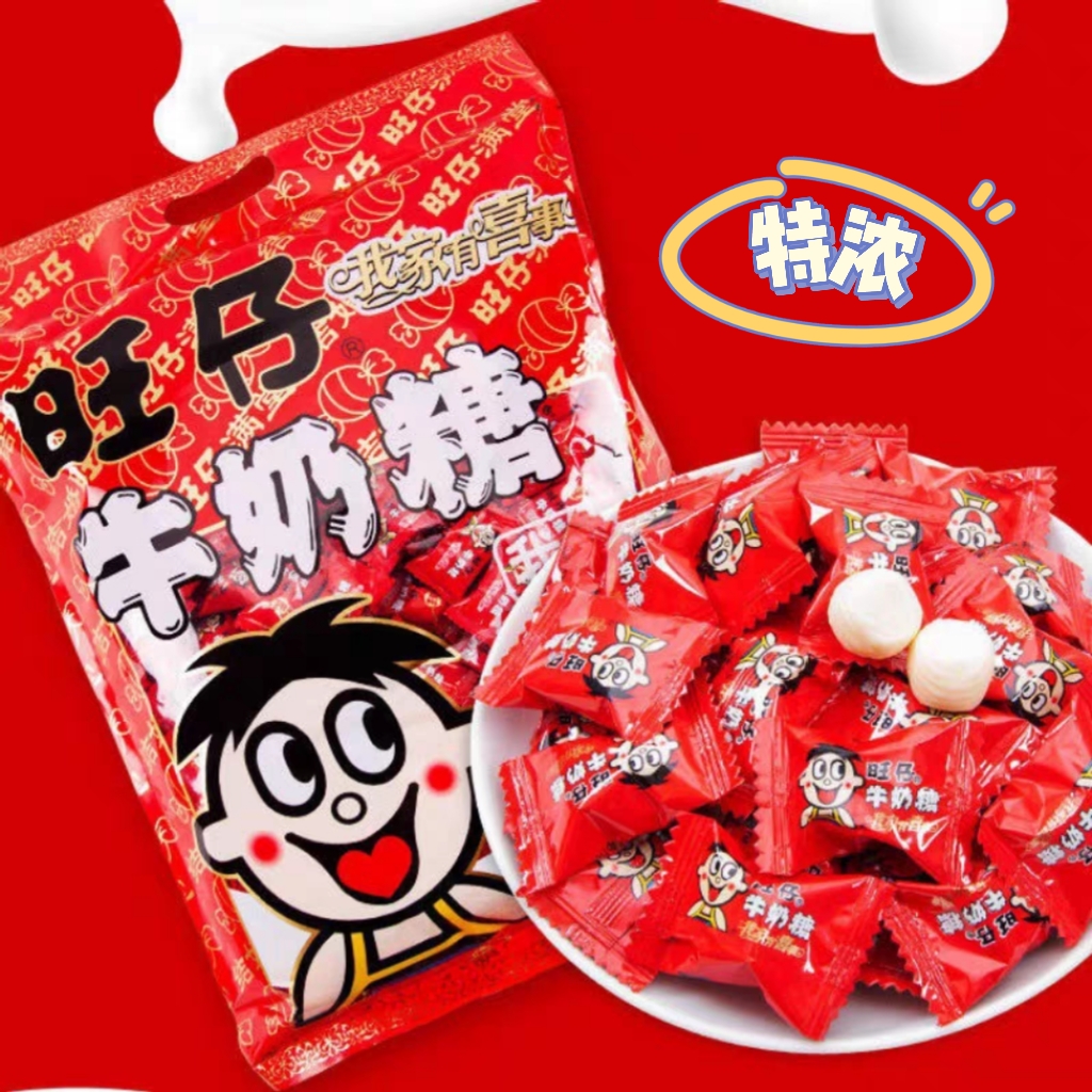 富含人体每日必须的多种氨基酸、钙、脂肪、维生素等营养成份;大红色的包装设计,醒目的旺仔LOGO,高端的品质,定价合理,奶味纯正、浓郁、淳厚,口味香甜,咬感好--浓浓的奶香咬出甜甜的好滋味,色彩鲜亮抢眼、喜庆高档,非常讨消费者喜爱。旺仔牛奶糖是位於台湾旺旺集团出品的奶类糖果