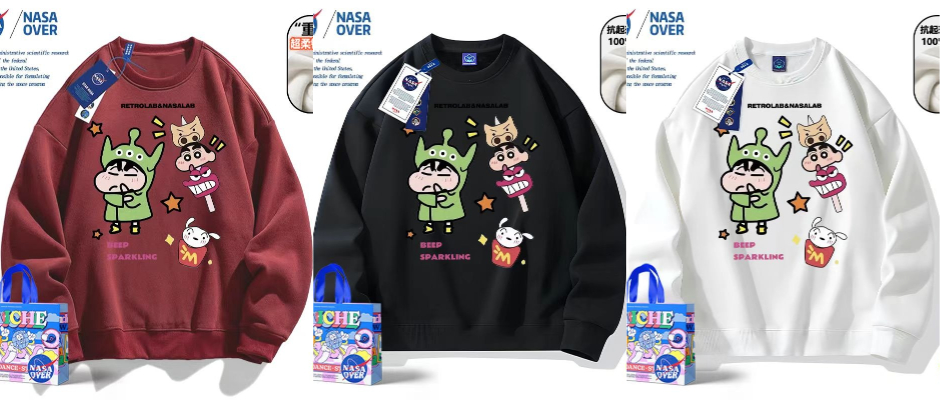 NASA联名蜡笔小新卫衣女秋冬宽松慵懒风chic休闲圆领长袖加绒上衣 女装 黑色 M