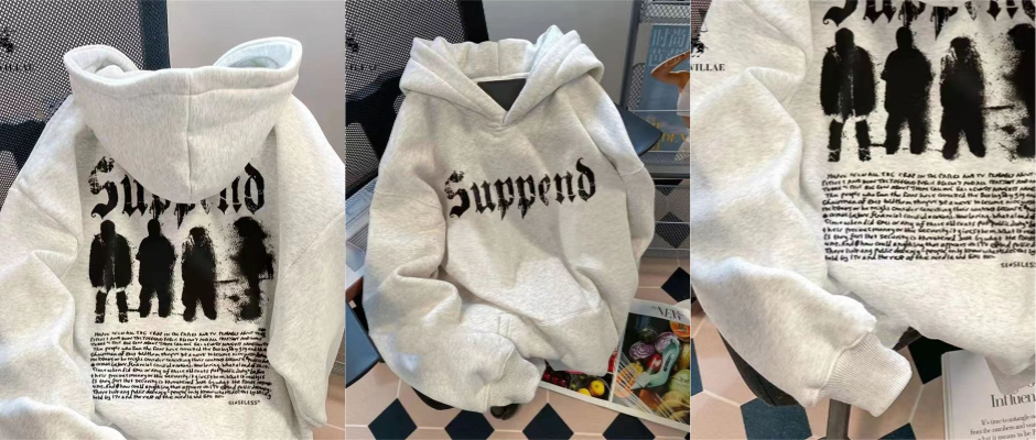 100%纯棉连帽卫衣女秋冬国潮vibe风加绒潮流上衣潮 女装 花灰色 s