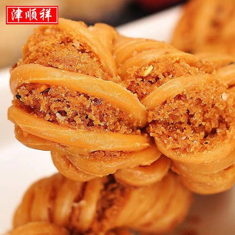十八街麻花是经过反复探索进行创新,在白条和麻条中间夹一条含有桂花、闵姜、桃仁、瓜条等多种小料的酥馅,使炸出的麻花酥软香甜与众不同,创造出的什锦夹馅大麻花。其特点是香、酥、脆、甜,在干燥通风处放置数月不走味,不绵软、不变质。
