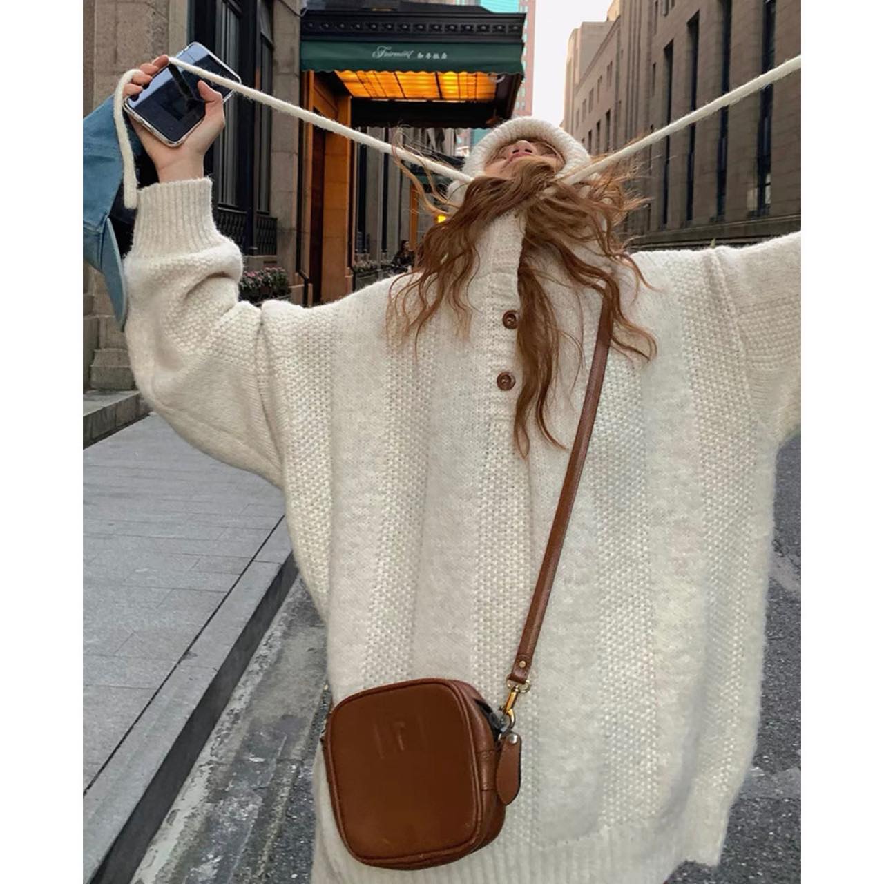 Milli Millu连帽套头针织毛衣女秋冬外穿宽松慵懒风冬季内搭外套