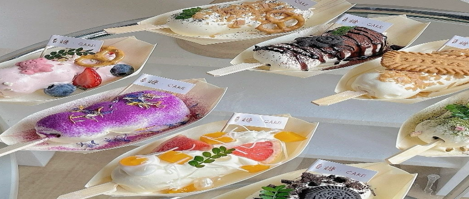 摆盘装饰木皮船白玉丸子章鱼小丸子甜品寿司糯米丸子打包盒奶盖