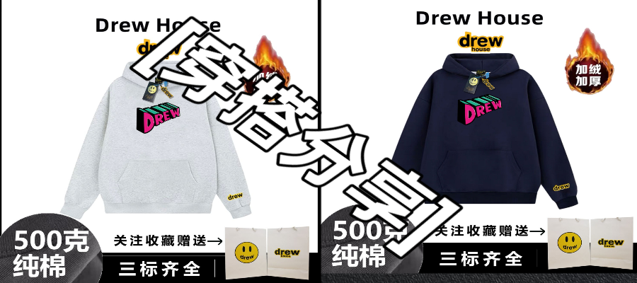 DREW HOUSE笑脸立体感字母连帽卫衣高街FOG美式情侣纯棉加绒长袖