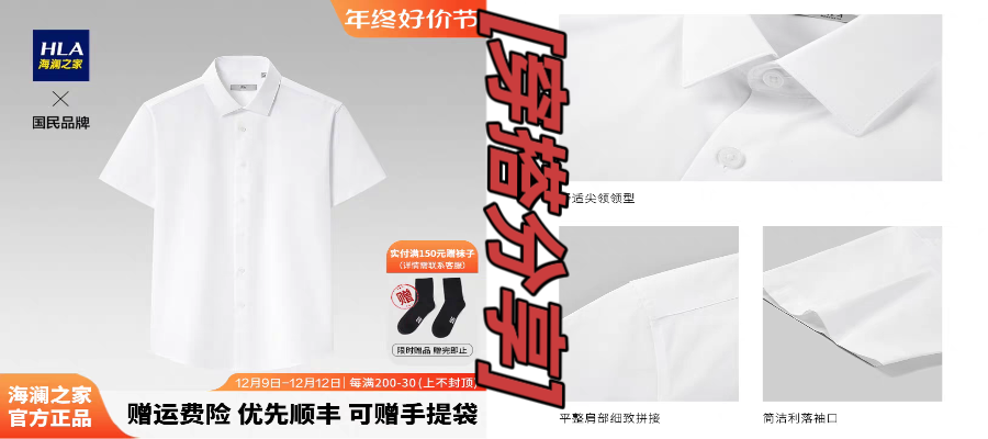 HLA/海澜之家商务短袖正装衬衫2023夏季新长袖透气白色通勤衬衣男