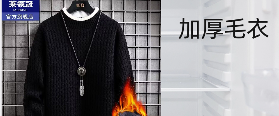 【莱领冠】高档毛衣男秋冬季青年加绒加厚保暖韩版线衣学生针织衫