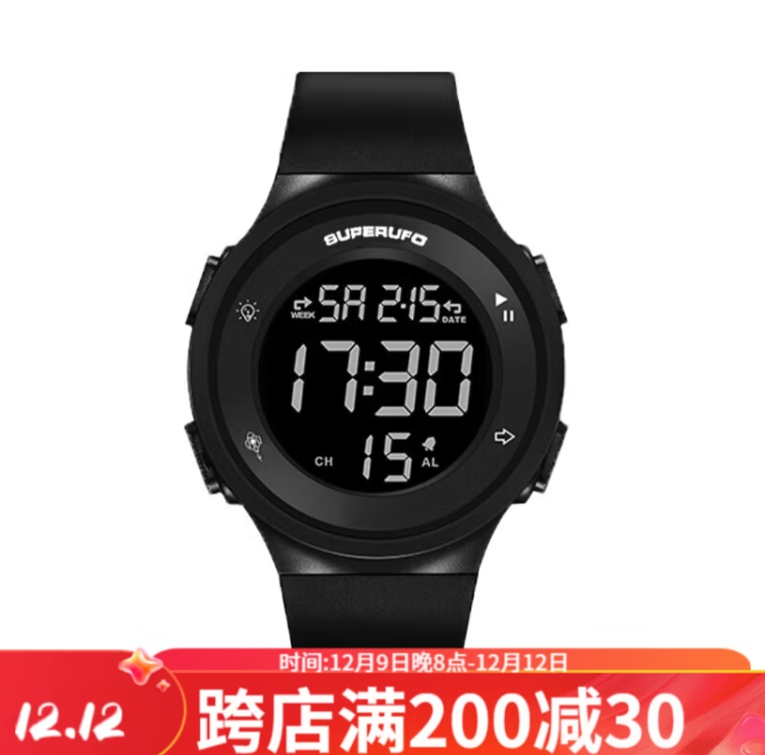 佰时顿(BASID) 手表男学生运动防水多功能初高中青少年电子表校园夜光男士腕表 黑银