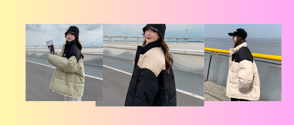 拼接棉服女冬季短款2023新款设计感加厚棉衣小个子撞色面包服棉袄