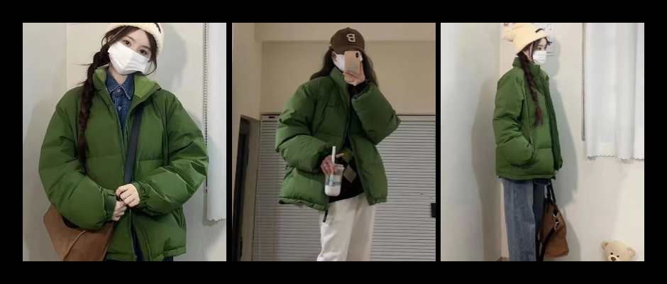 绿色羽绒棉服女短款新款韩版时尚加厚情侣宽松棉衣冬季面包服潮