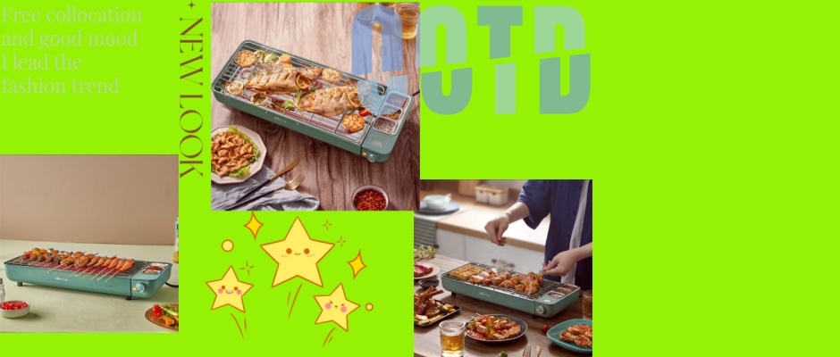 电烧烤炉家用烤串机室内无烟自助电烤炉露营户外小型[带调料盘],多功能电烤炉,使用前加少量水,无极旋转调节火力,如炭火般爆烤肉质金黄喷香。