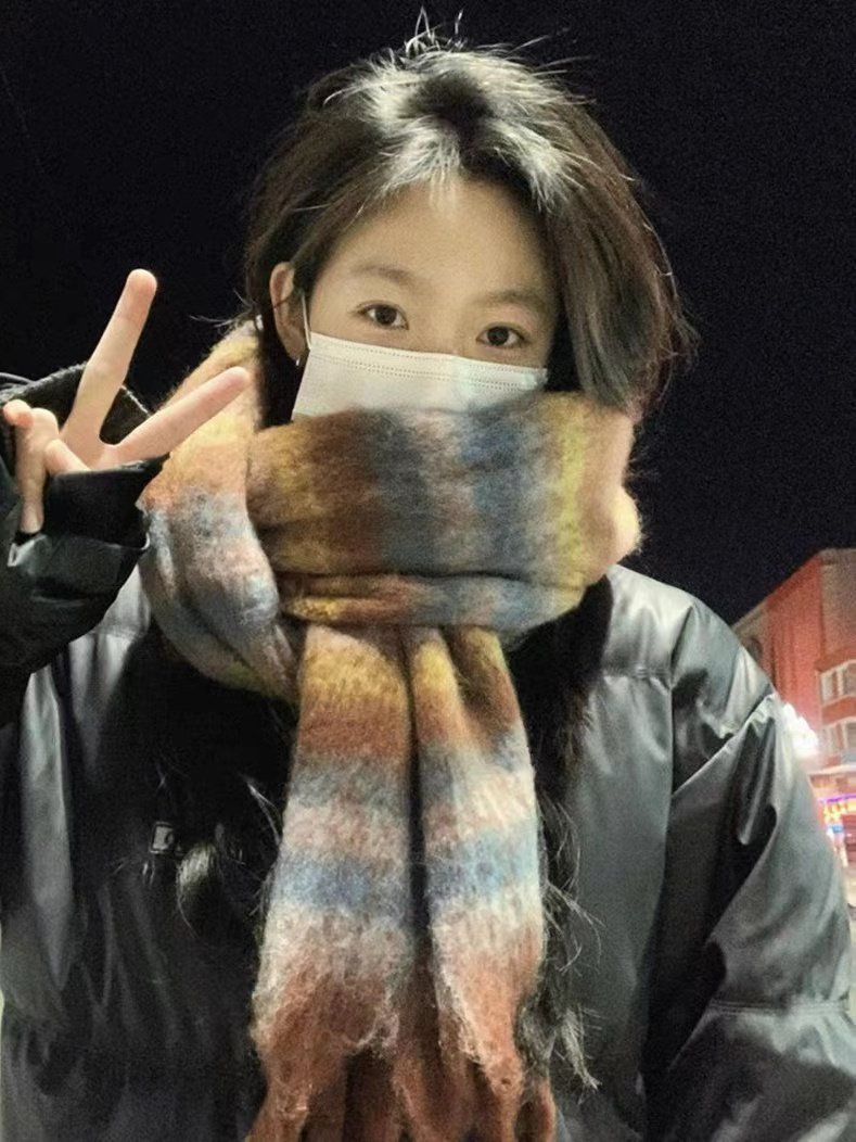 当下流行的美拉德风的围巾,让你的穿搭更出彩。色彩的撞击给人带来视觉盛宴。足够的厚度又让寒冷的冬天更加充满温暖。