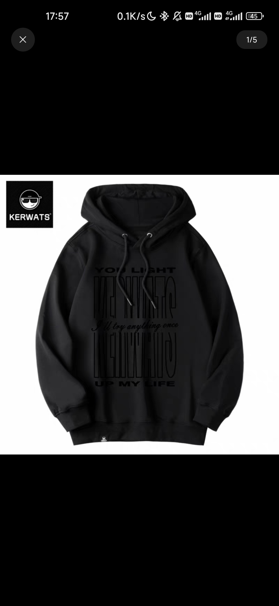 KERWATS大码男装美式复古英文字母潮牌印花套头秋冬黑色卫衣连帽