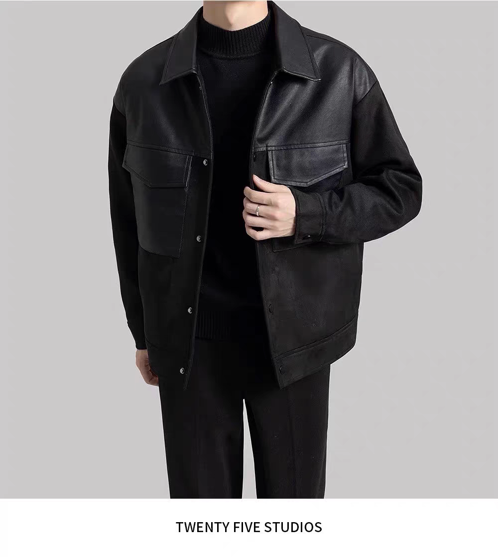 外套男秋冬季2023新款翻领麂皮绒夹克韩版男装休闲PU皮拼接上衣男