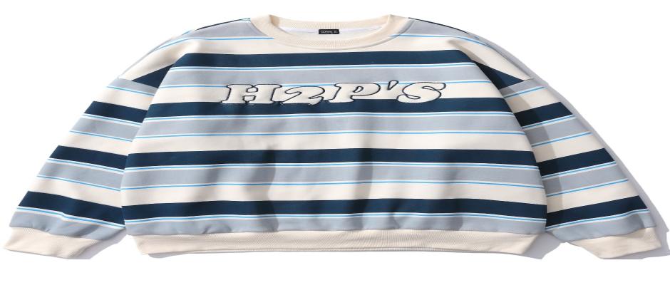 复古学院风系列 基础简约条纹贴补刺绣字母宽松套头圆领长袖卫衣 男女同款
