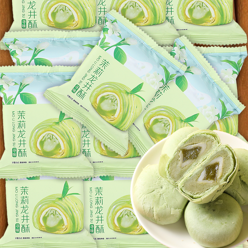 茉莉龙井茶酥饼桂花乌龙茶酥抹茶麻薯杭州特产小吃糯叽叽糕点零食