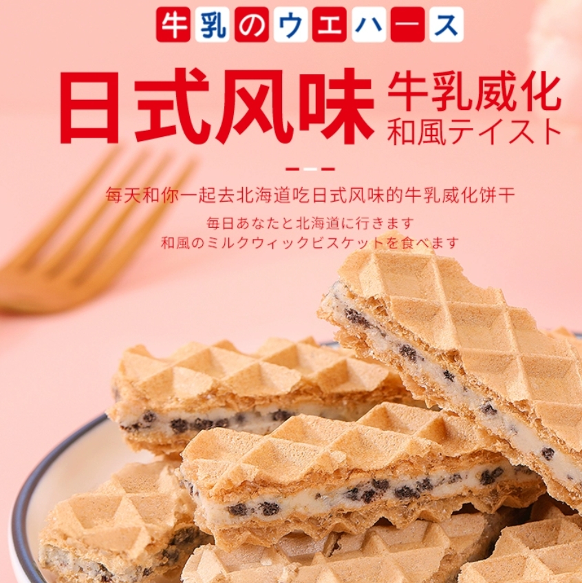 泓一北海道风味牛乳威化饼干整箱网红多款小吃包装小零食休闲食品