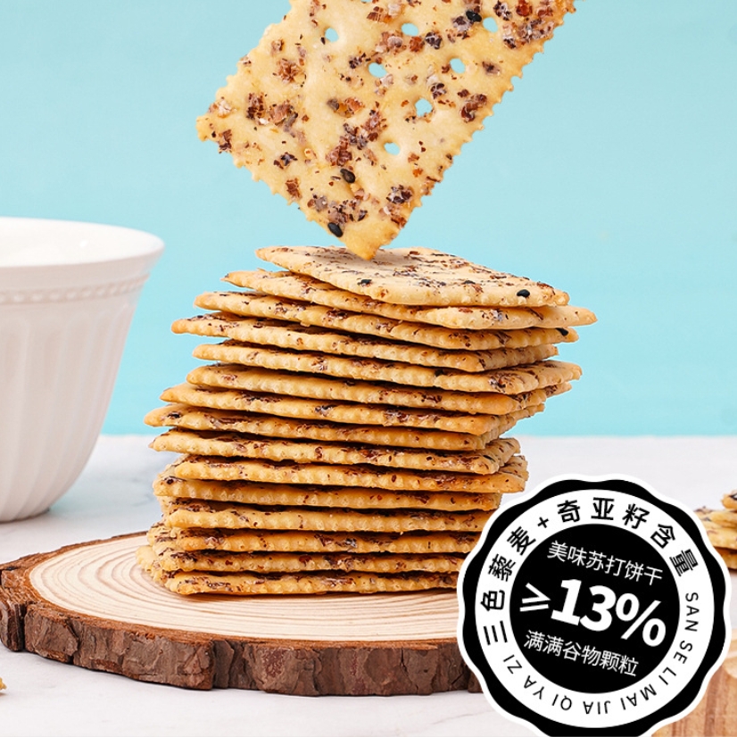 【整箱80包】奇亚籽三色藜麦苏打饼干0添加蔗糖海盐即食零 食批发