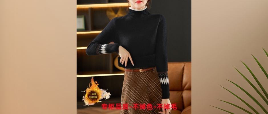 女士一体绒加绒毛衣女加厚2023年新款爆款保暖内搭打底衫女秋冬装