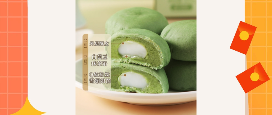 【低脂低钠】龙井绿茶酥麻薯无糖精网红休闲早餐馋点心糯叽叽糕点