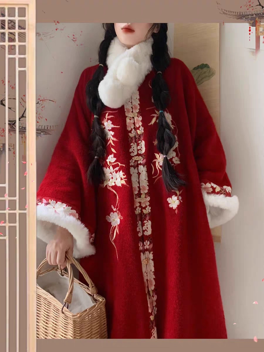 捌伍柒原创 暖暖 明制汉服女冬款加厚刺绣方领对襟衫马面裙套装
