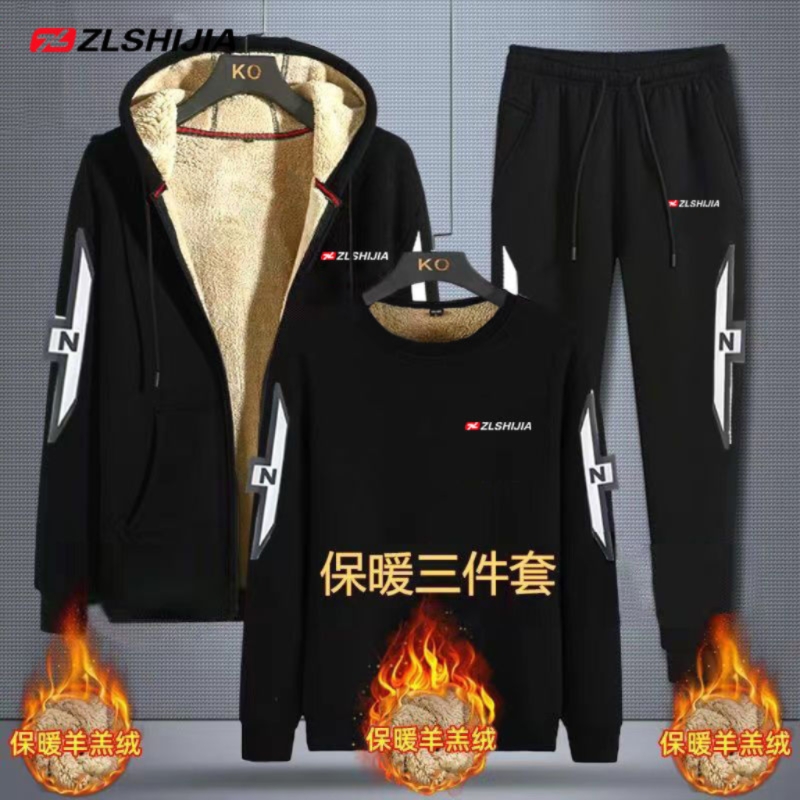 战狼世家秋冬季运动套装男士羊羔绒加绒三件套保暖卫衣外套束脚裤