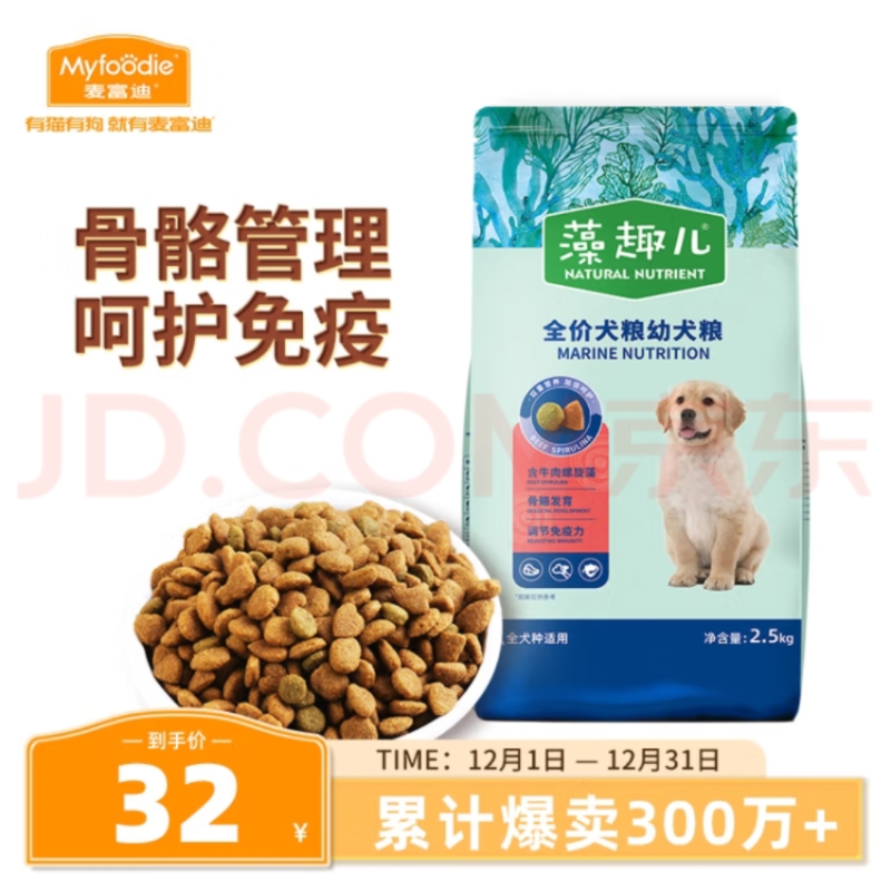 麦富迪狗粮 藻趣儿2.5kg 幼犬中大型小型犬通用(牛肉螺旋藻)金毛泰迪