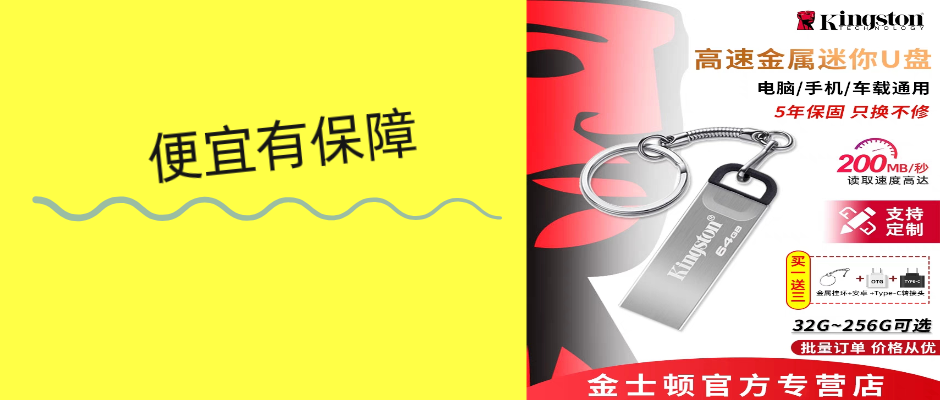 金士顿64g高速大容量u盘128g官方正品刻字礼盒定制32防丢电脑优盘