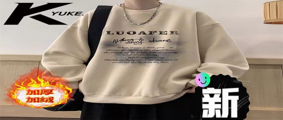 港风卫衣男秋冬季美式复古重磅圆领潮牌长袖宽松加绒大码上衣外套