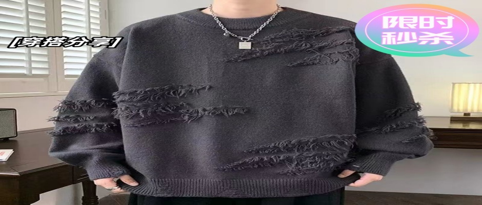个性圆领毛衣男秋冬季潮牌痞帅宽松针织衫男日系复古慵懒线衣外套