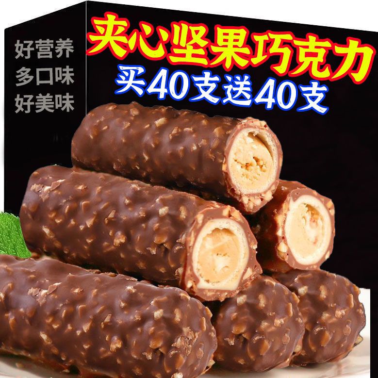 一整箱8O支】爆浆坚果花生果仁棒夹心巧克力棒长条脆筒能量棒零食