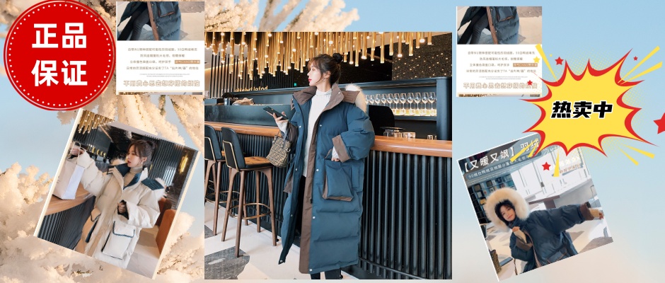 黑白撞色白鸭绒羽绒服工装BF风女长款过膝韩国新款宽松东大门潮牌