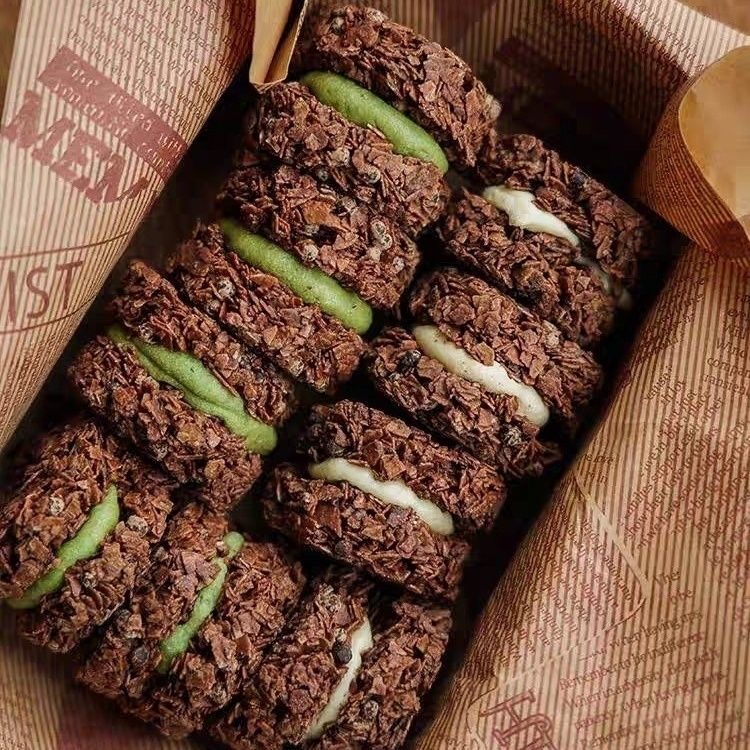 脆吨吨黑巧克力奶轧纯可可燕麦酥奶香原味抹茶牛轧夹心脆代餐零食