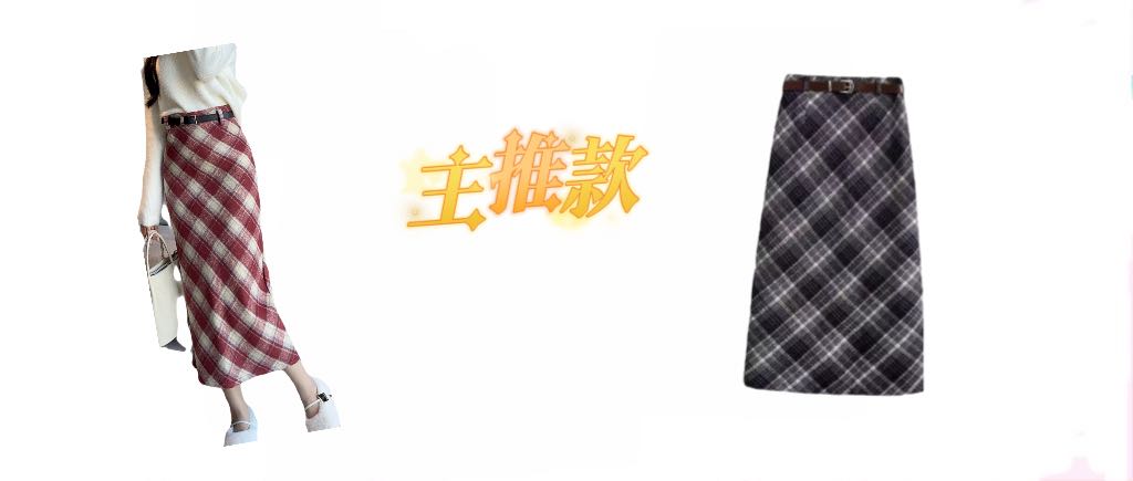 毛呢复古格子半身裙秋冬加厚新款小个子高腰显瘦中长款后开叉裙子