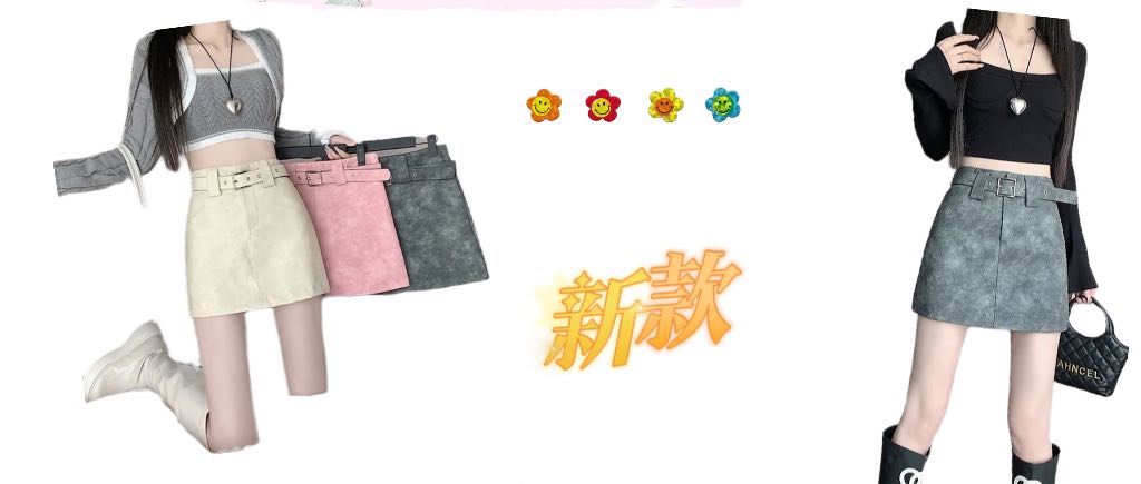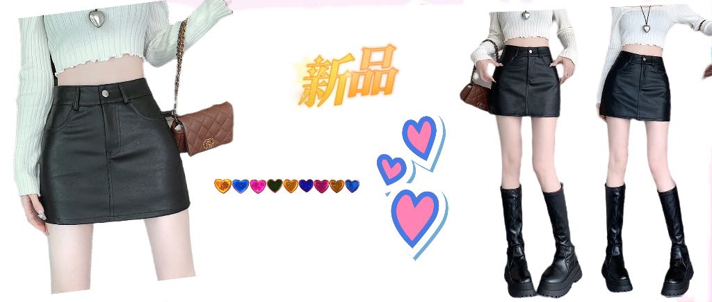 粉色PU秋季穿搭半身裙女2023秋冬新款美式修身高腰a字包臀短皮裙