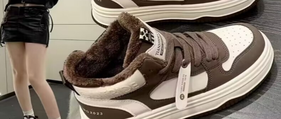 名典高帮鞋女冬季加绒保暖棉鞋厚底板鞋2023新款校园风百搭运动鞋